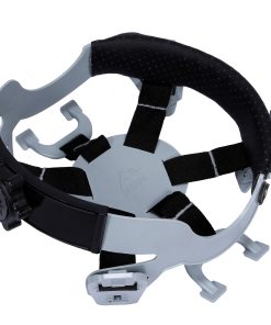 Sistema de suspensão com carneira em cinta de algodão e coroa em polipropileno, tipo separáveis, carneira fixa no casco através de quatro pontos de fixação, regulagem de tamanho por pino ou catraca, com tira absorvente de suor em PU, espessura de aproximadamente 3 mm. Pode ser fornecido com ou sem jugular presa no casco.